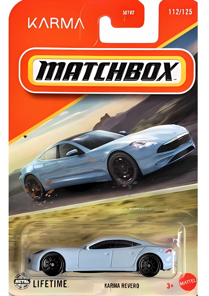 Venham conhecer as réplicas miniatura Karma Revero (Azul Claro) 1/64 , com a referência JBP00, é um modelo da série principal (Mainline) da marca Matchbox, sendo um item colecionável.